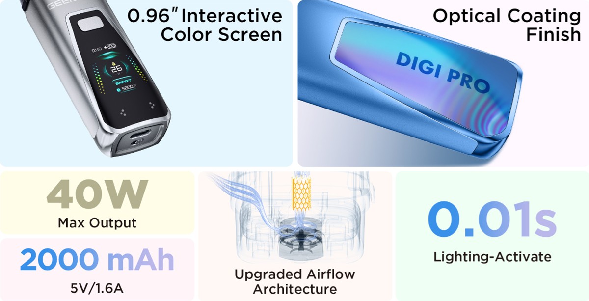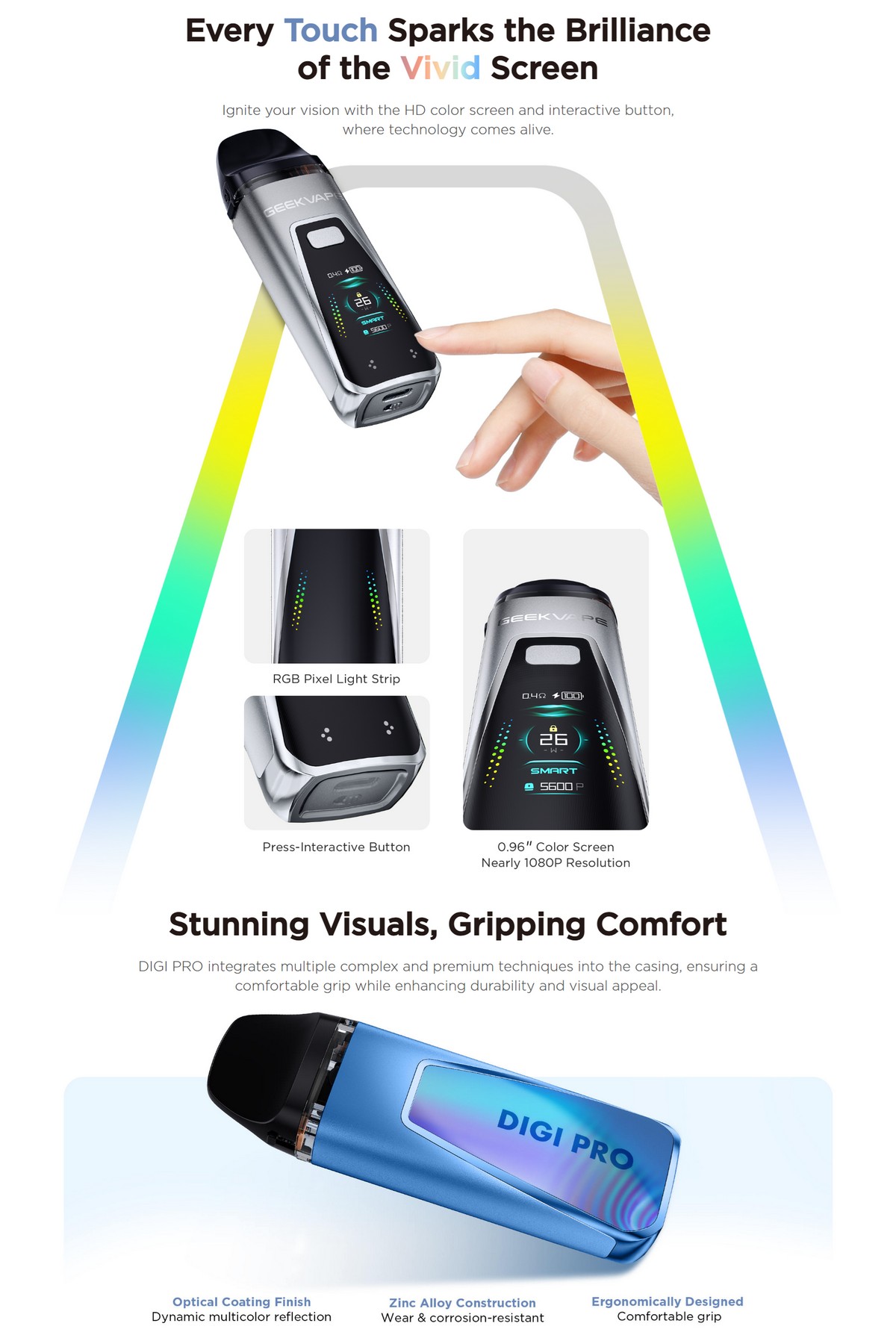 Το Digi Pro R από την Geekvape είναι ένα Pod σύστημα με ενσωματωμένη μπαταρία 2000mah, απόδοση ισχύος έως 40w και το δοχείο του έχει χωρητικότητα 5ml υγρού, ιδανικό από MTL έως RDL άτμισμα!